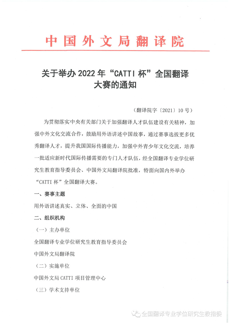关于举办2022年“CATTI杯”全国翻译大赛的通知