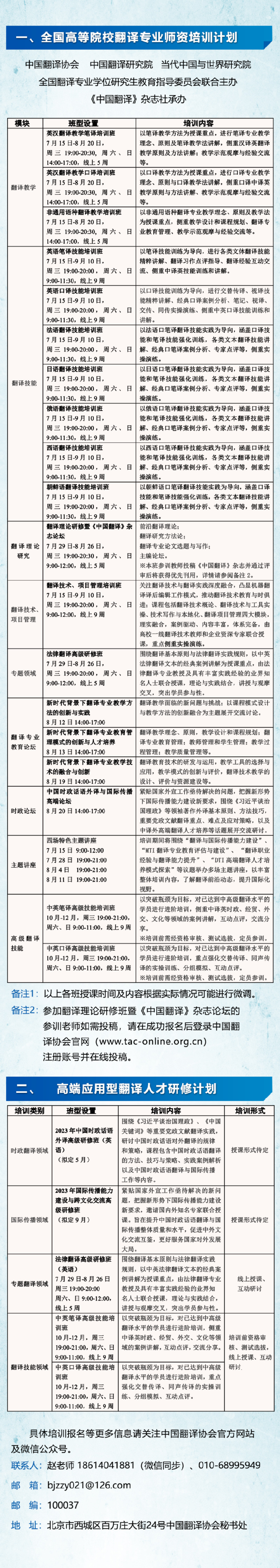2023年中国翻译协会培训一号公告