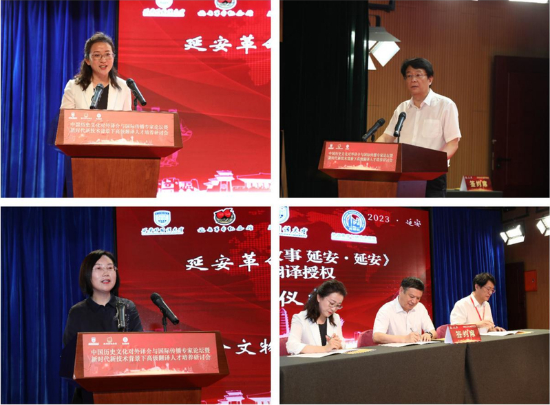 开幕式上,杜梅、白黎、刘捷分别代表《革命文物红色故事延安·延安》一书的编写单位、翻译单位、出版单位签署该书英文译著出版协议。图书主编茆梅芳介绍了本书的编写宗旨和内容。